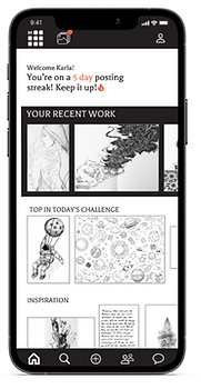 We used the black and white photos for our hi fidelity prototype because users would be drawing with a pen and uploading that work into the app. However, users are able to add color after uploading. The black and white model was modern and clean looking, but could confuse users.
